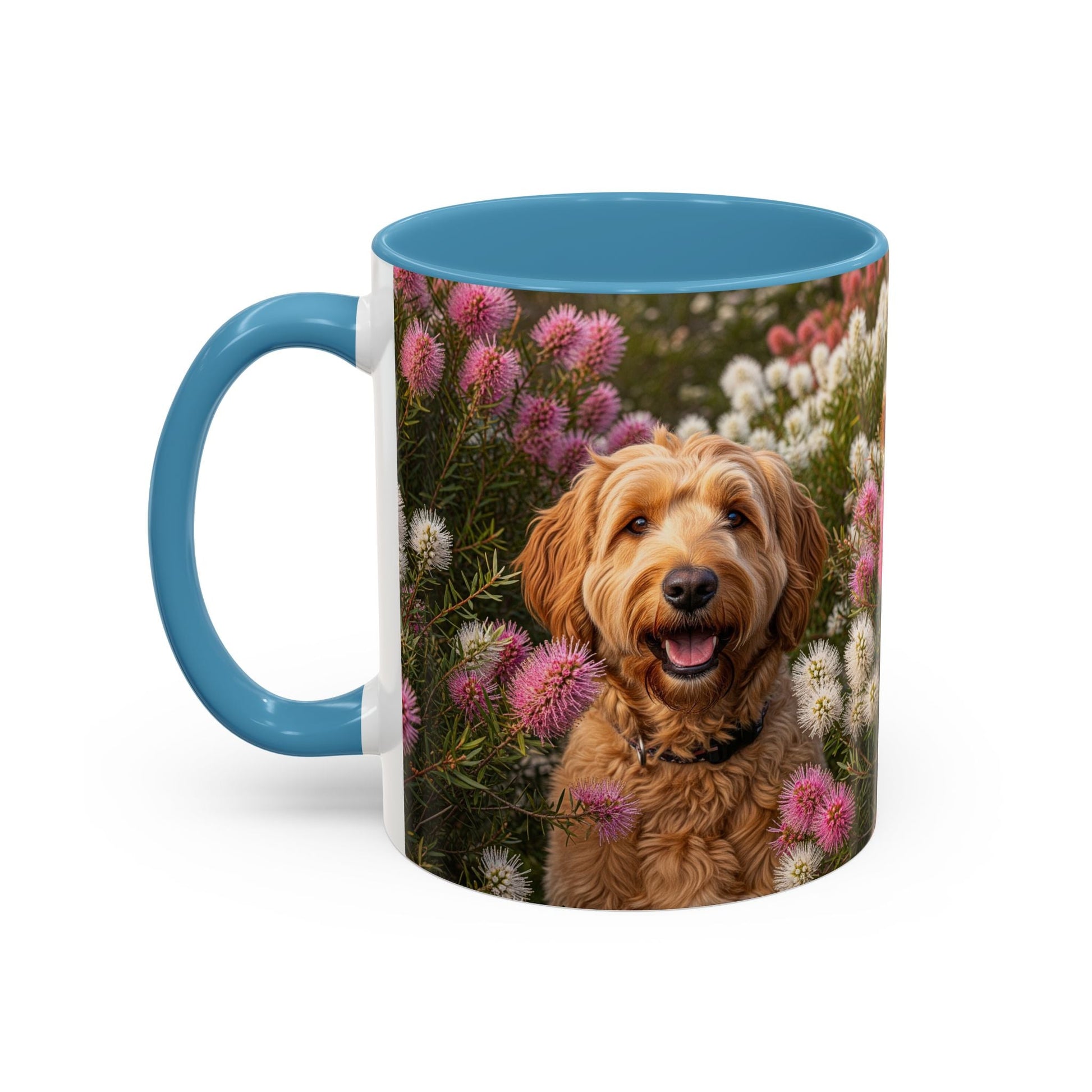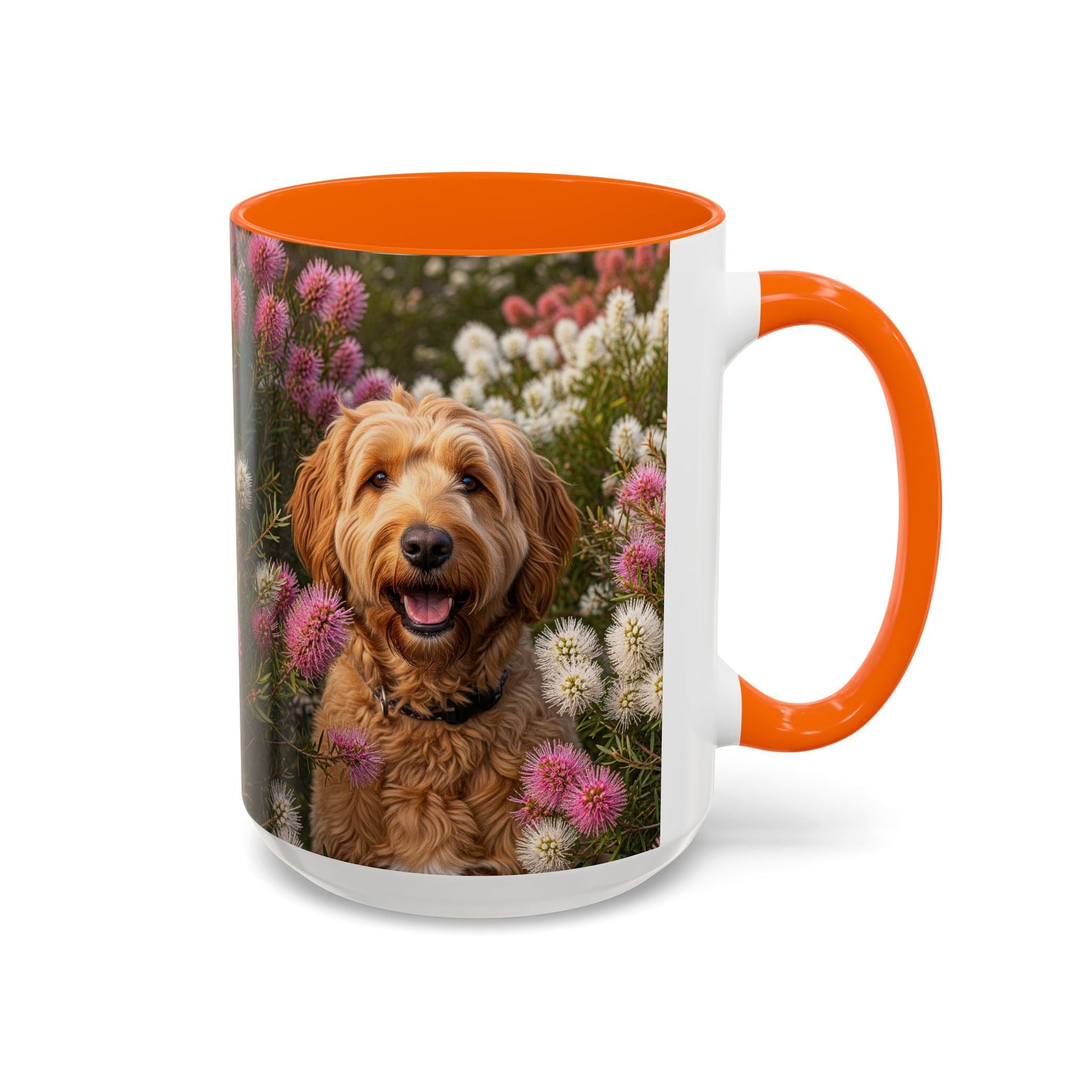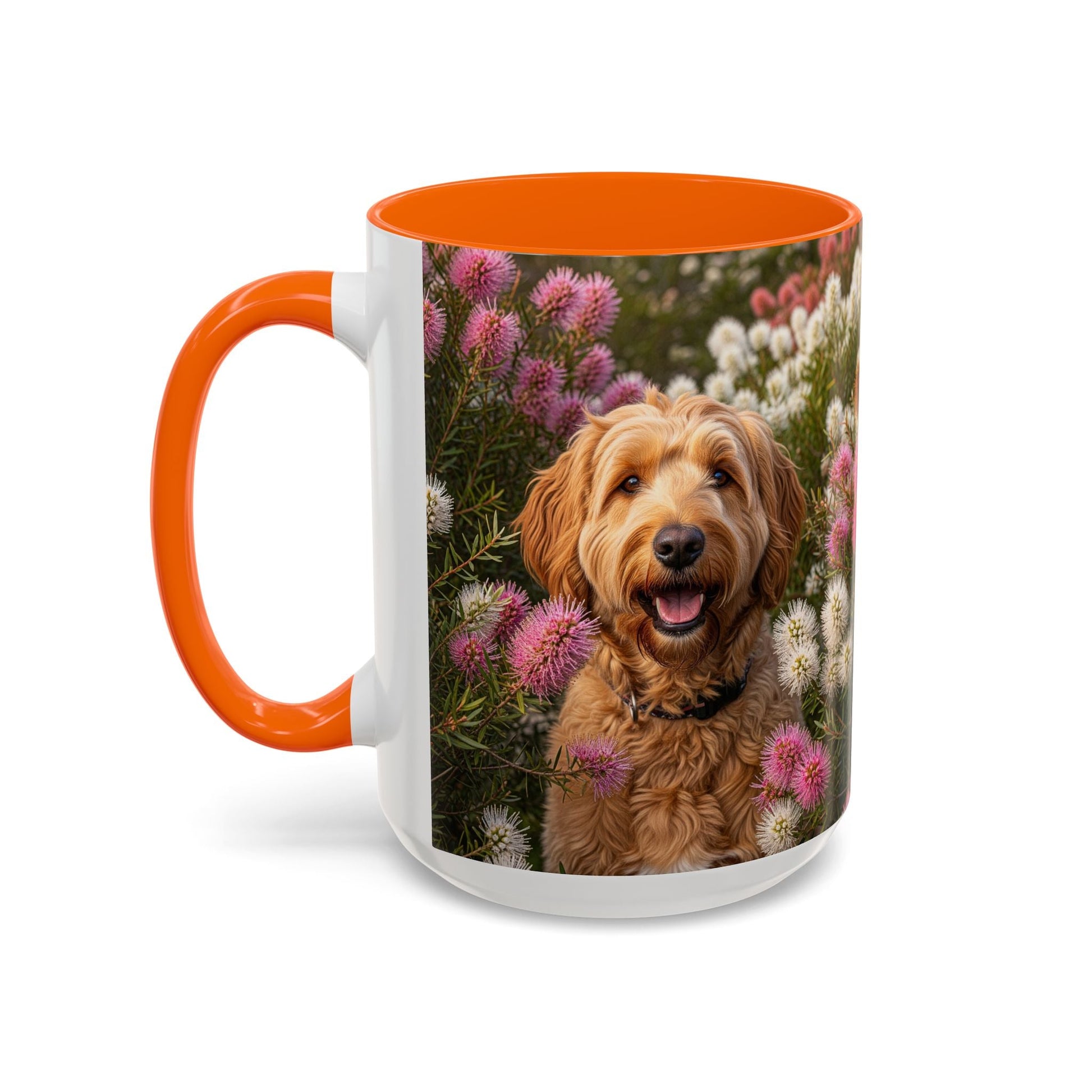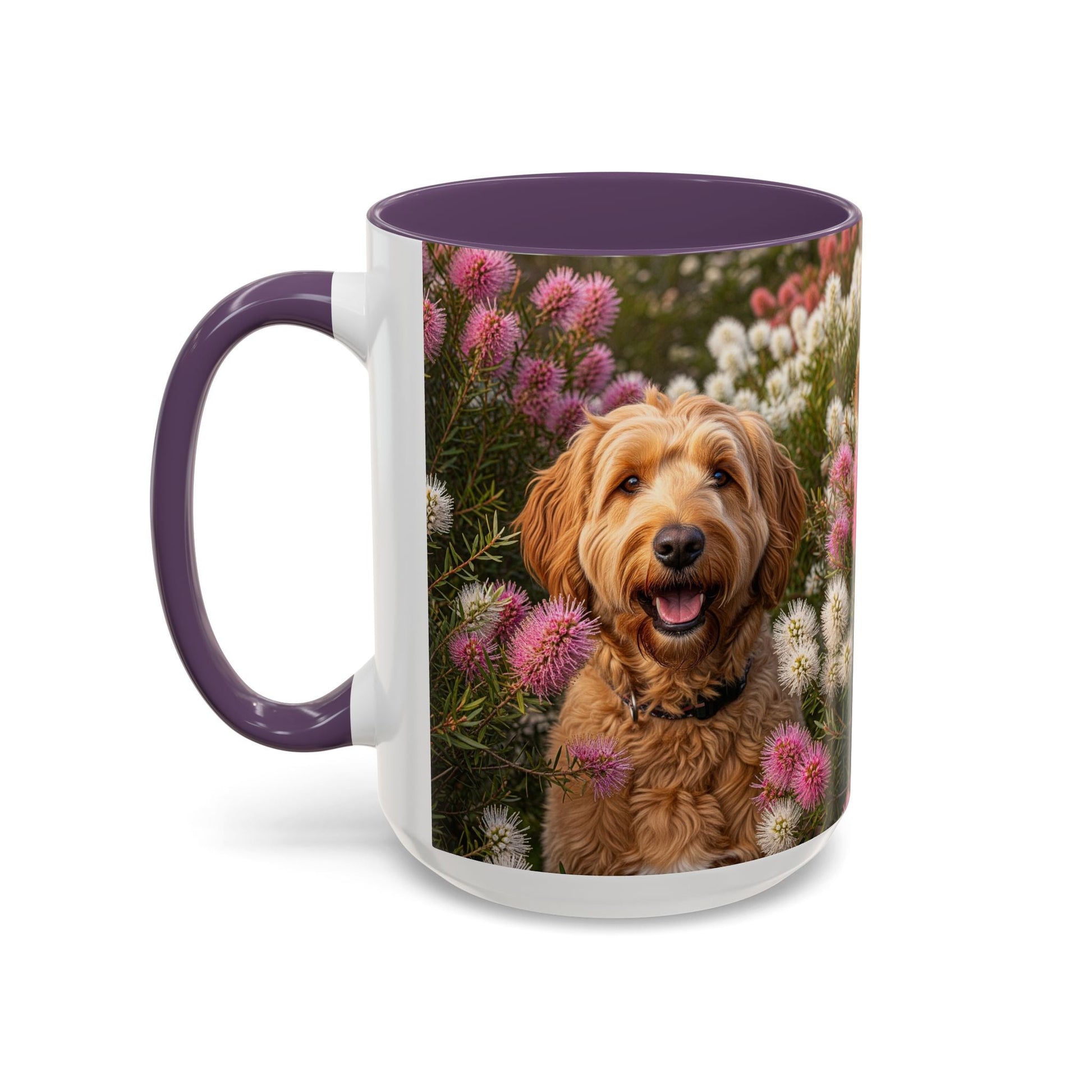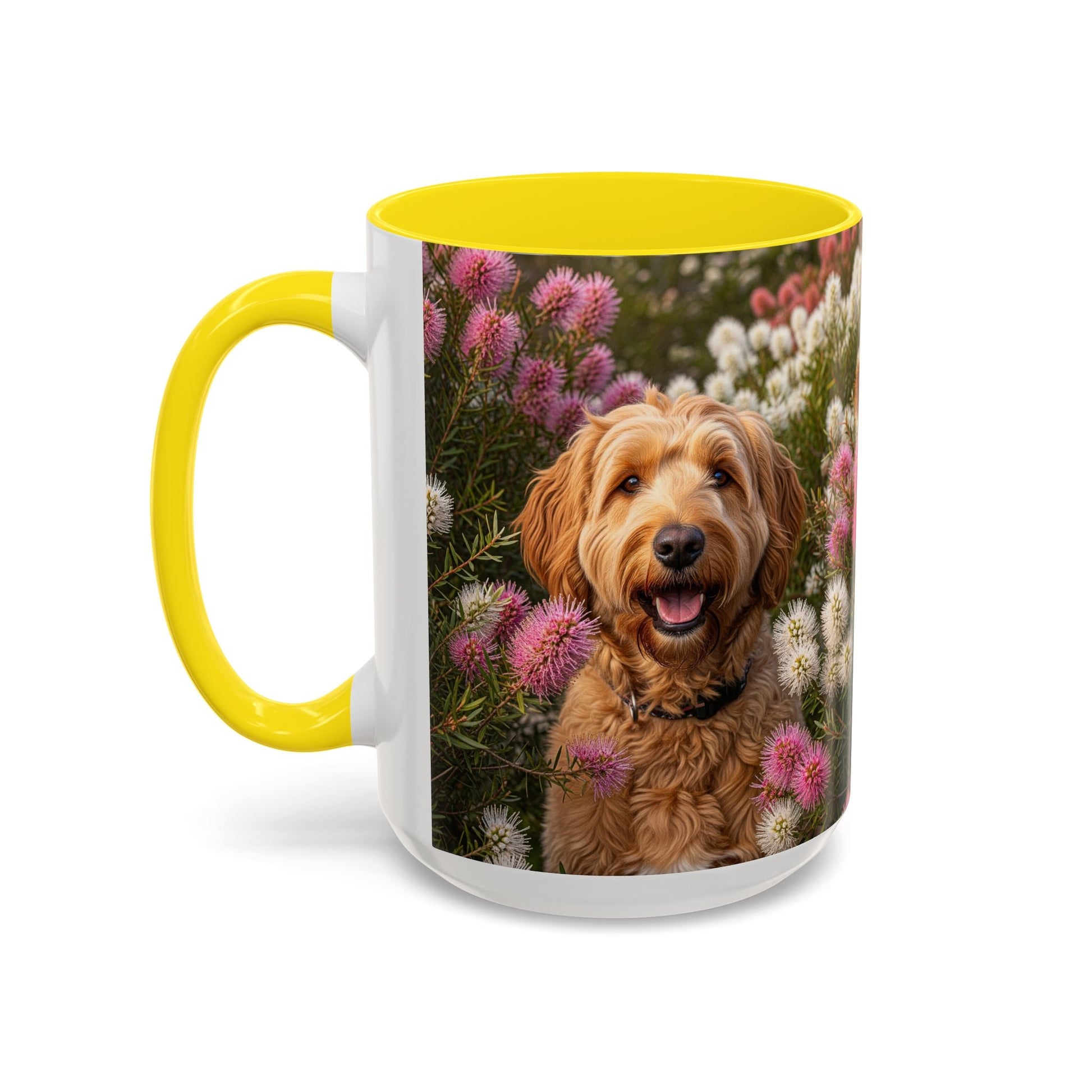 Goldendoodle Accent Coffee Mug - Perfect Gift for Dog Lovers. This vibrant mug is microwave and dishwasher safe, with a glossy finish and eye-catching color contrast. Ideal for dog lovers, this mug is perfect for enjoying a cozy cup of coffee or tea during the holidays.