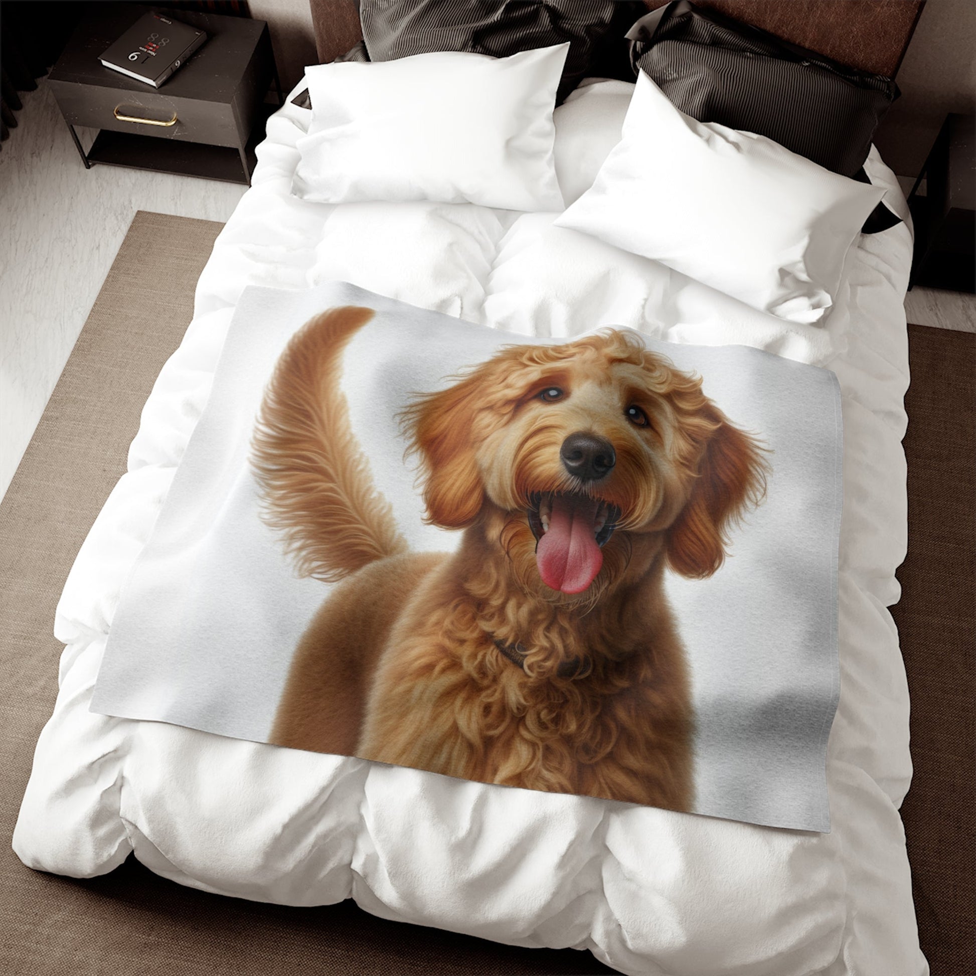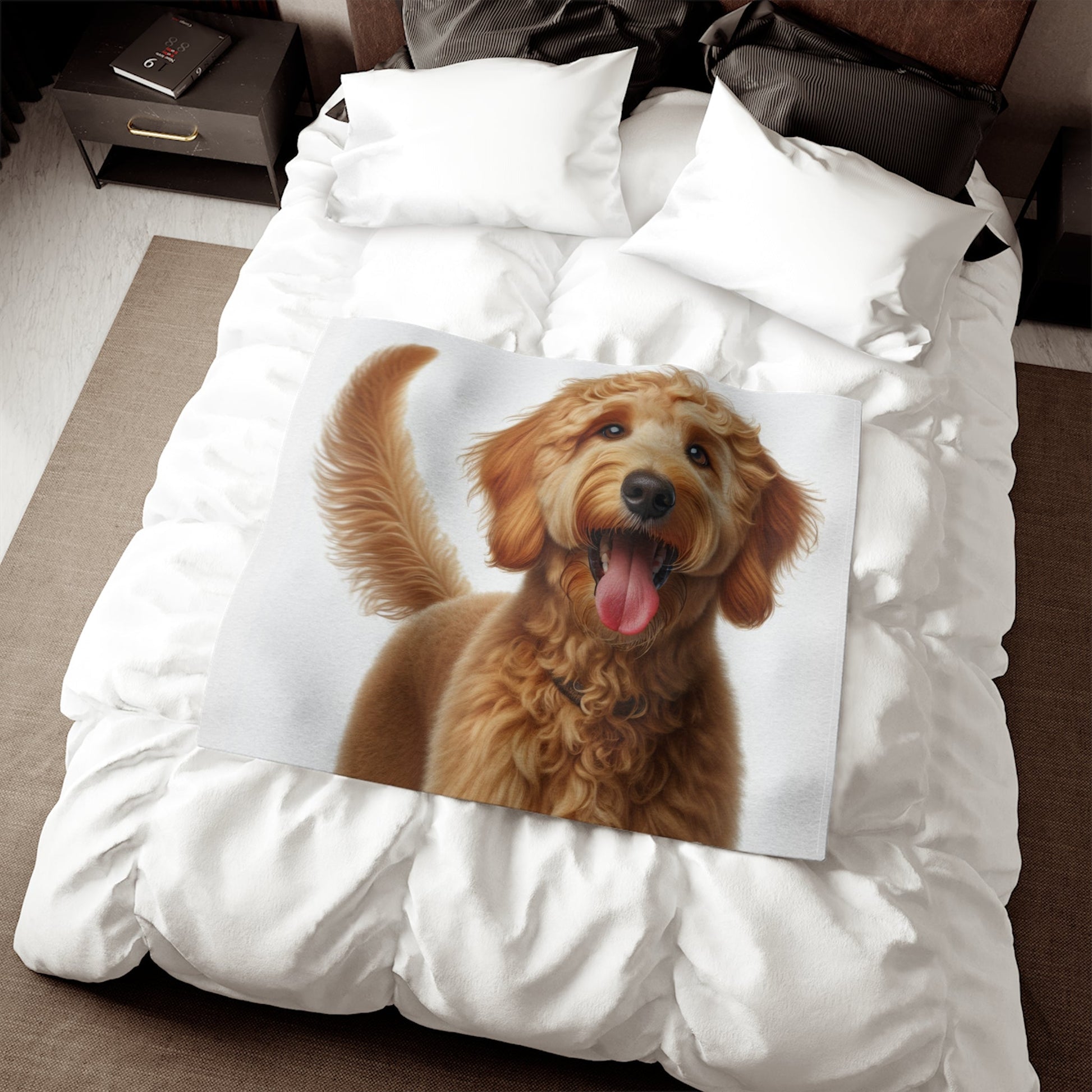 The Goldendoodle Sweatshirt Blanket is perfect for cozying up on chilly nights or adding a pop of color to your living space. Its vibrant design gives off a fun and laid-back vibe, making it a great addition to any dog lover's collection. This blanket is relevant for dog lovers, beach enthusiasts, and anyone looking to add a touch of whimsy to their decor. Perfect for gifting during summer, birthdays, or as a housewarming present.