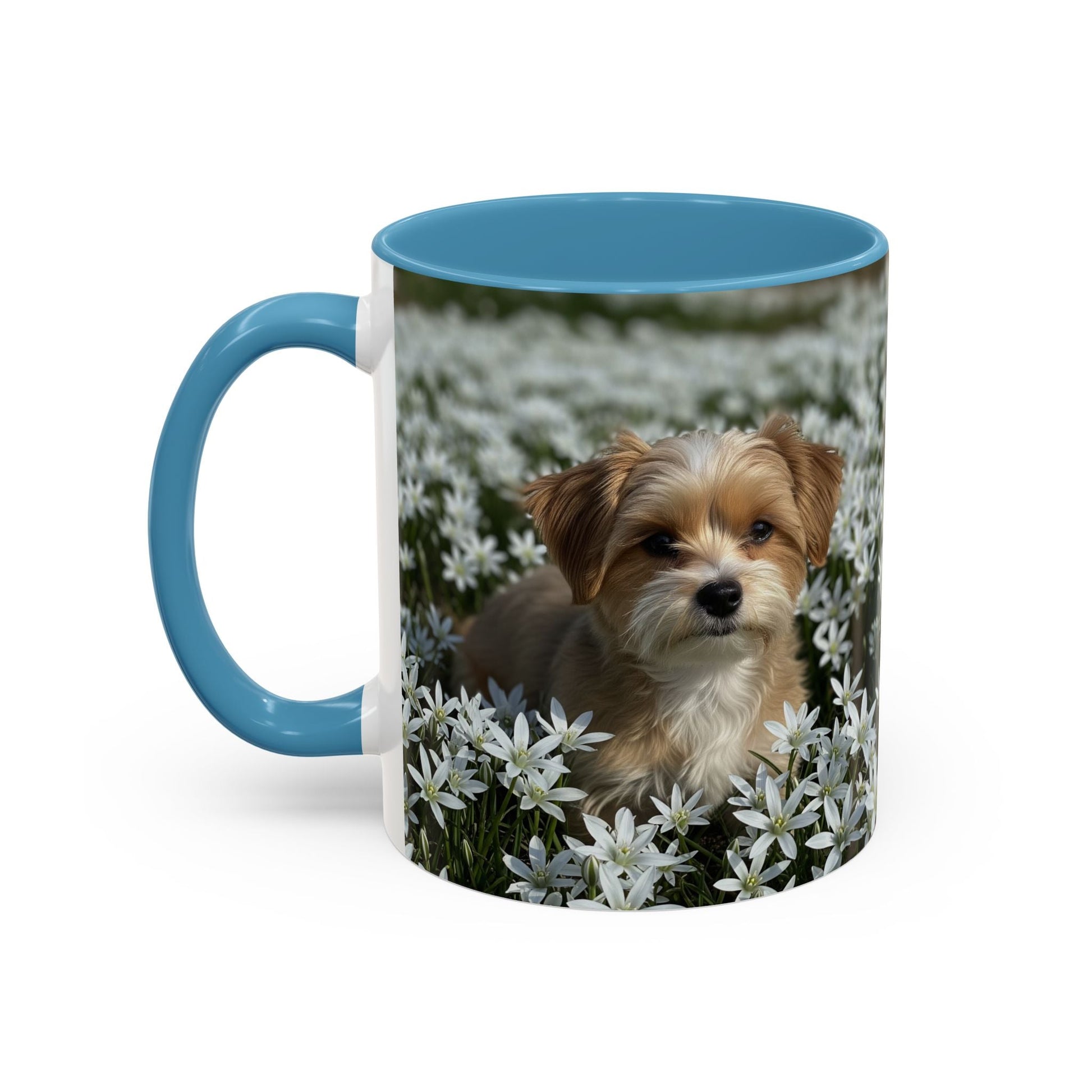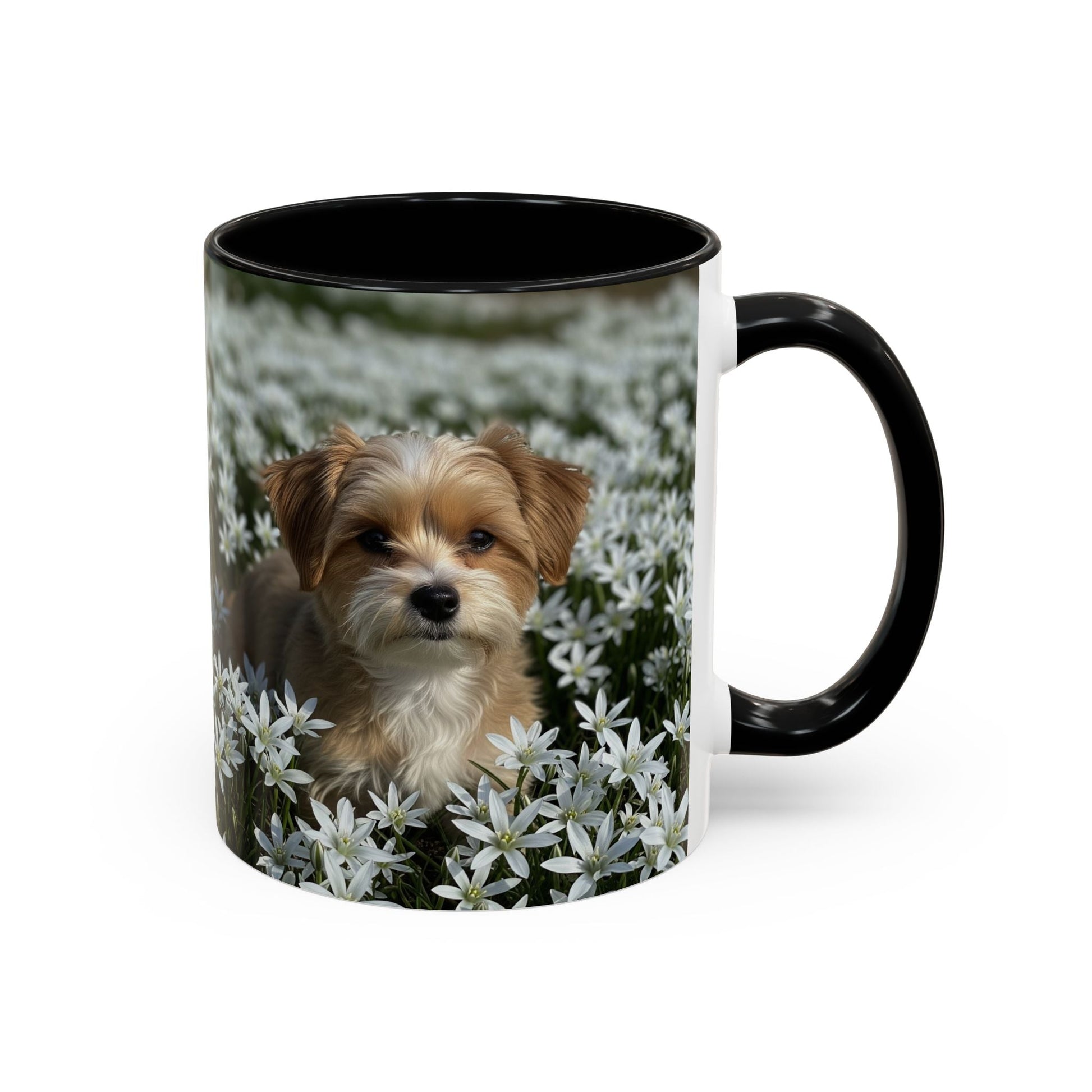 Morkie Accent Coffee Mug - Perfect Gift for Dog Lovers. This vibrant mug is microwave and dishwasher safe, with a glossy finish and eye-catching color contrast. Ideal for dog lovers, this mug is perfect for enjoying a cozy cup of coffee or tea during the holidays.