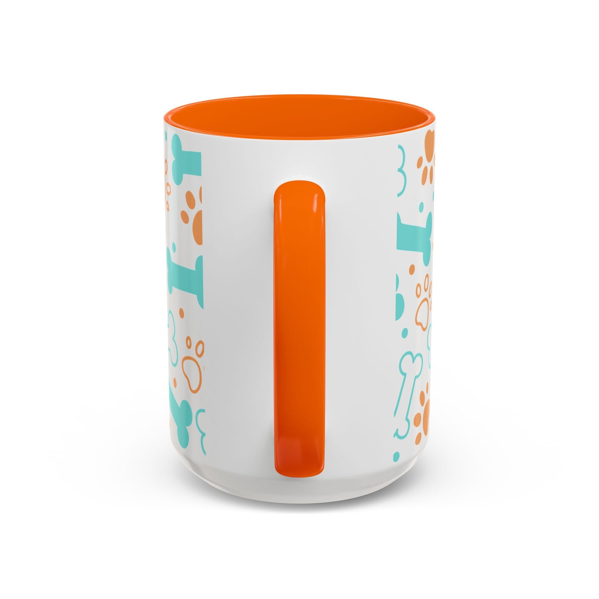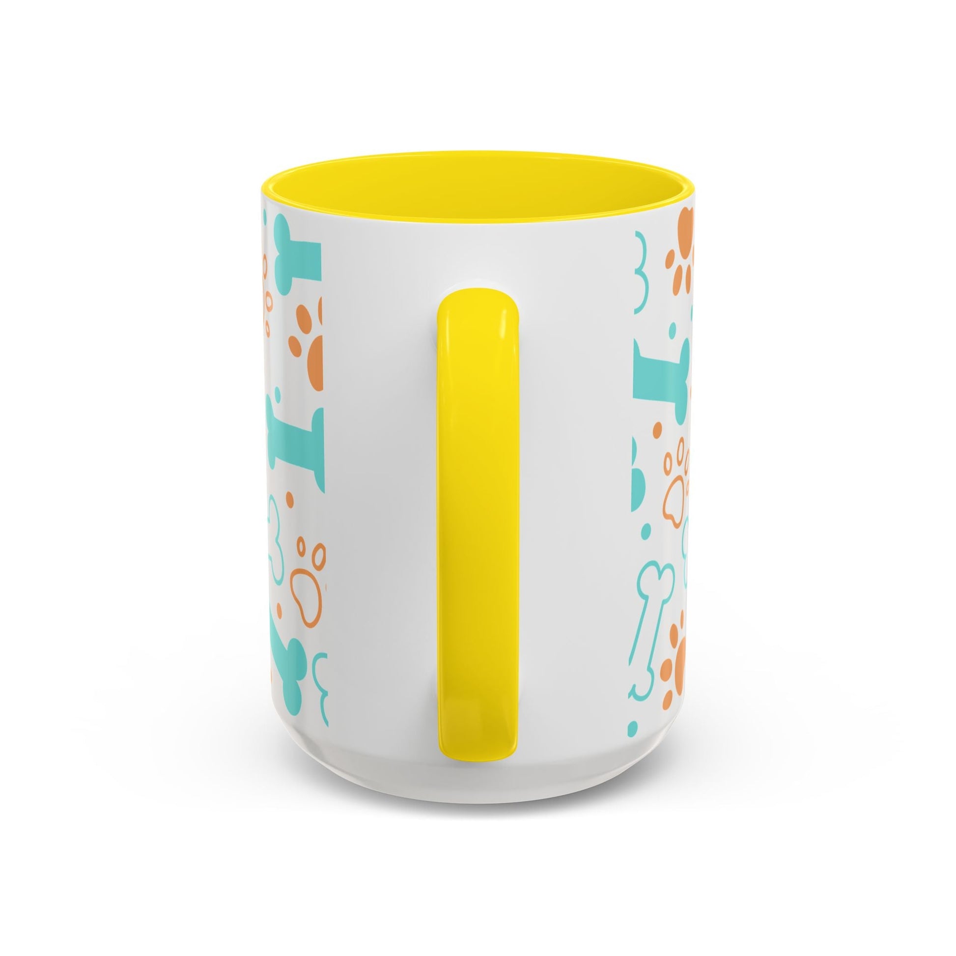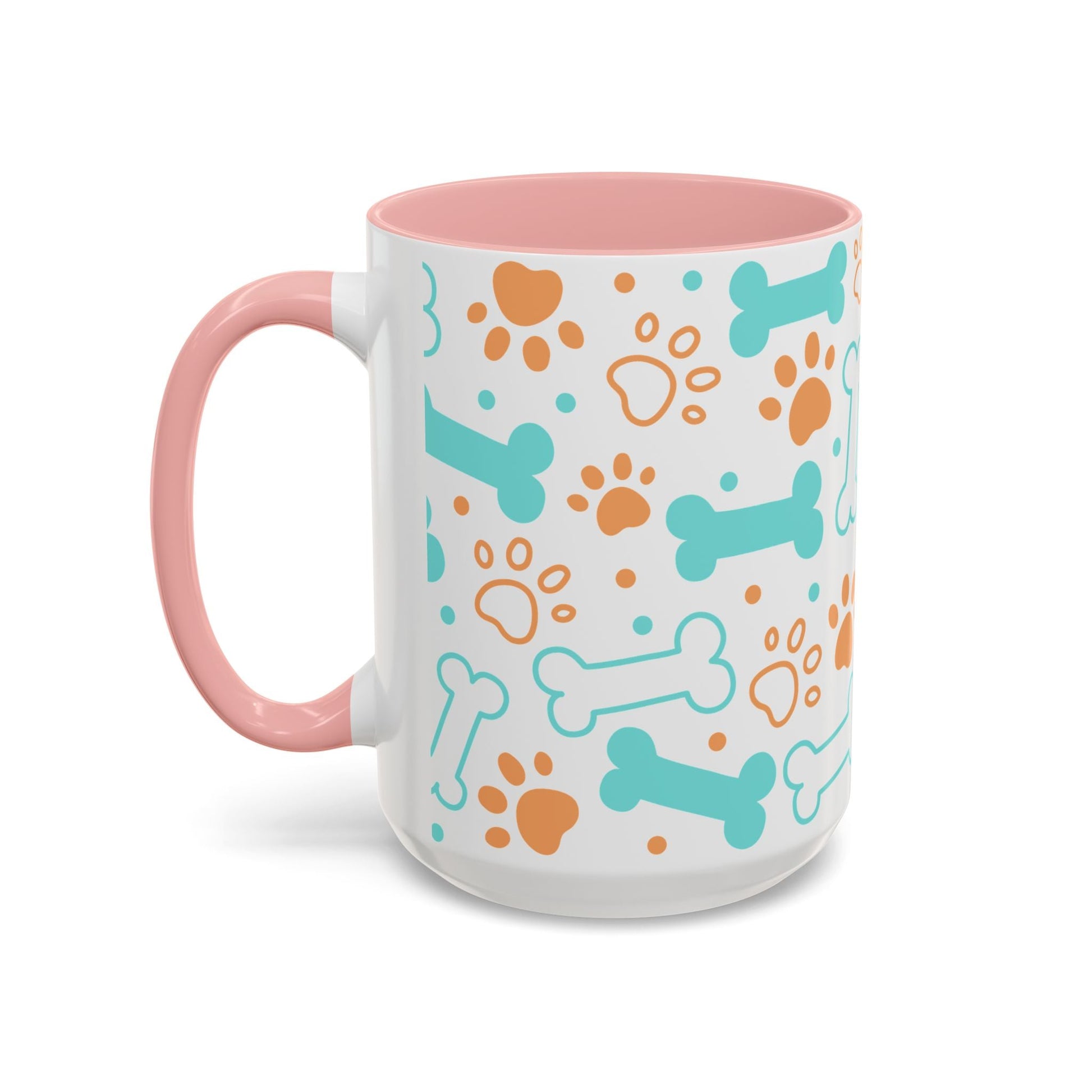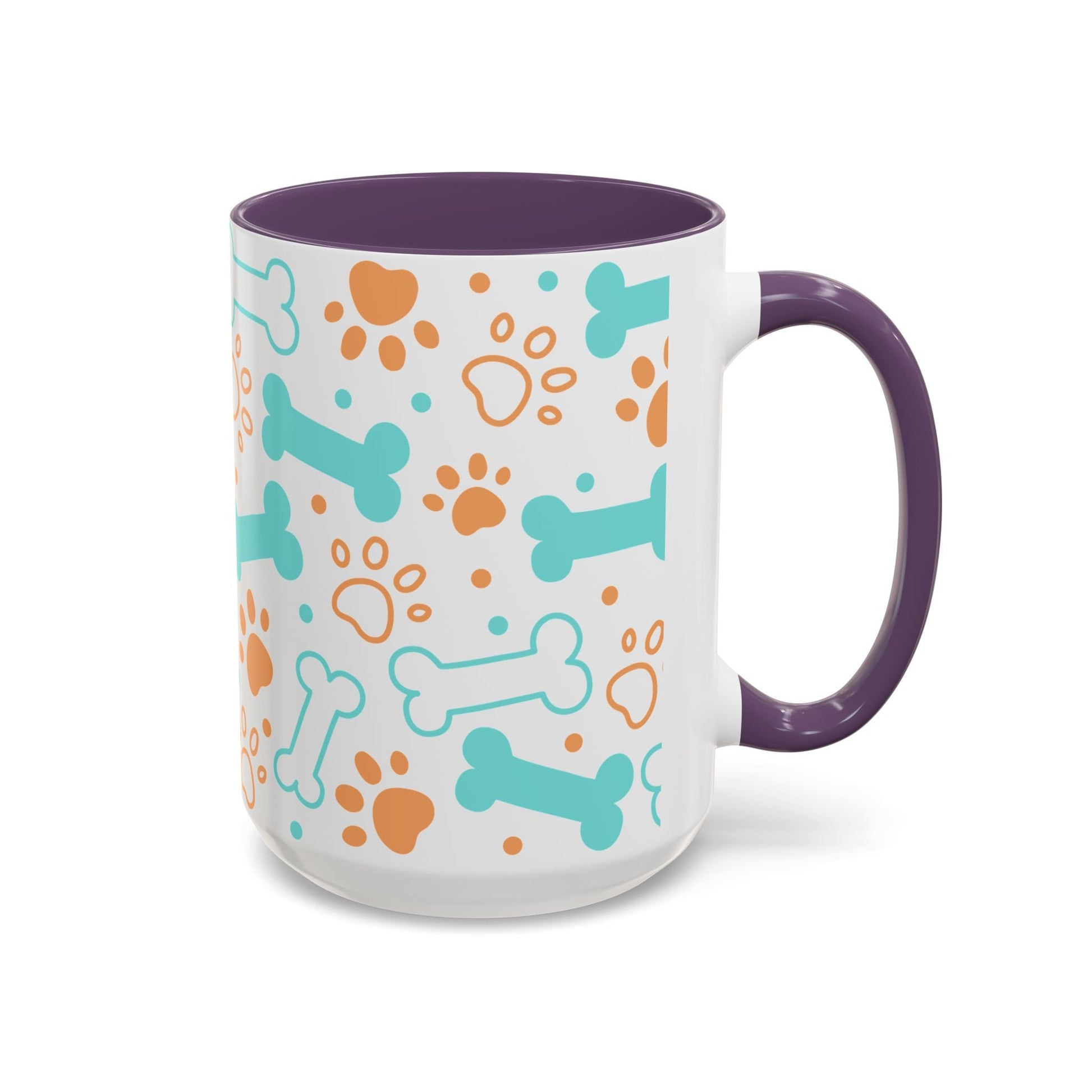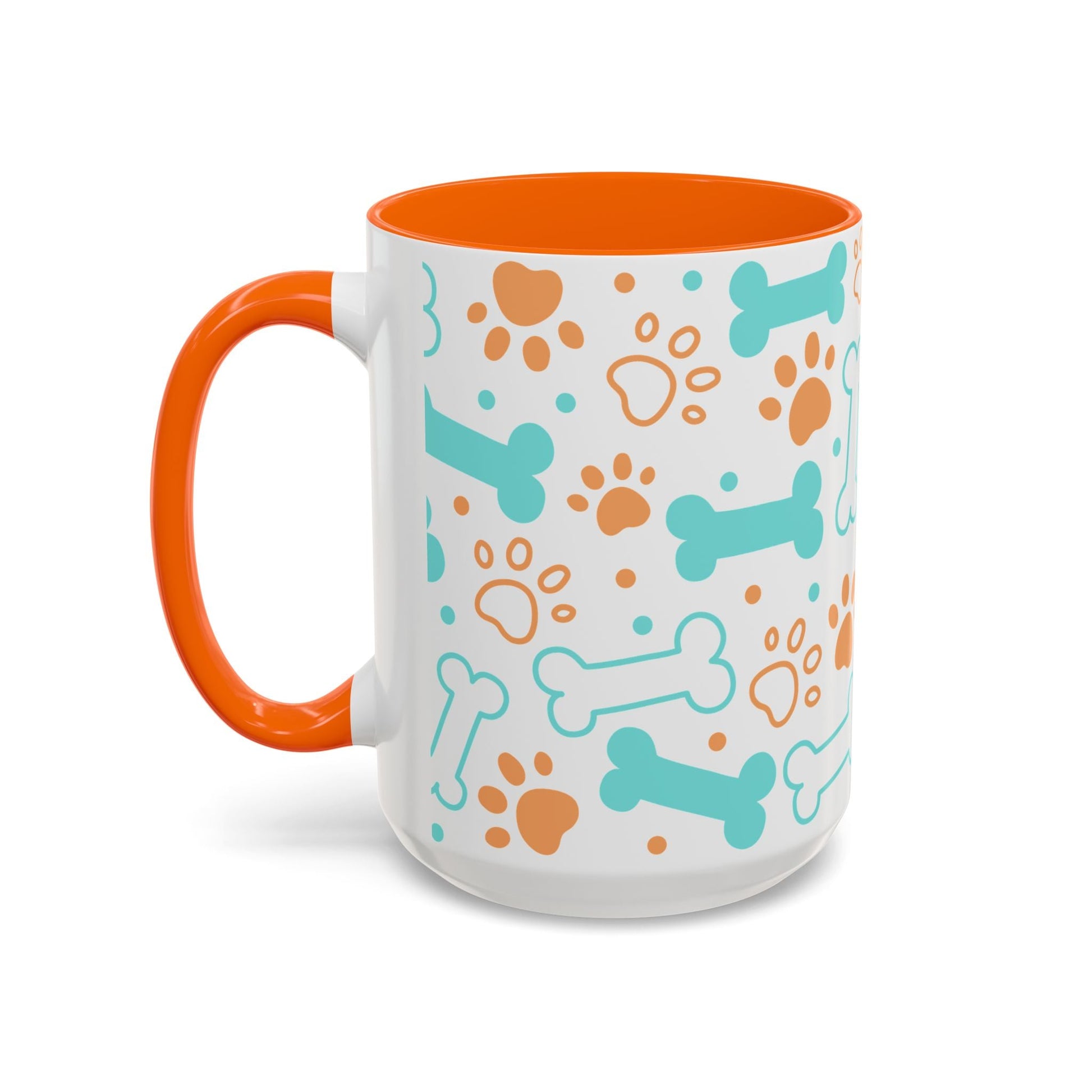 Puppy Pattern Accent Coffee Mug - Perfect Gift for Dog Lovers. This vibrant mug is microwave and dishwasher safe, with a glossy finish and eye-catching color contrast. Ideal for dog lovers, this mug is perfect for enjoying a cozy cup of coffee or tea during the holidays.
