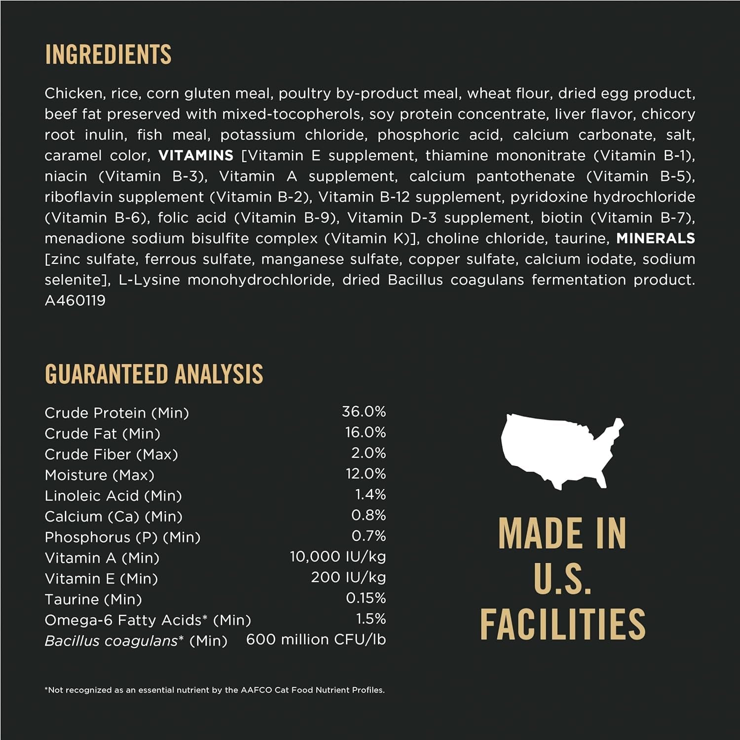 - Chicken is the first ingredient in this high dry protein cat food with rice to support muscle strength