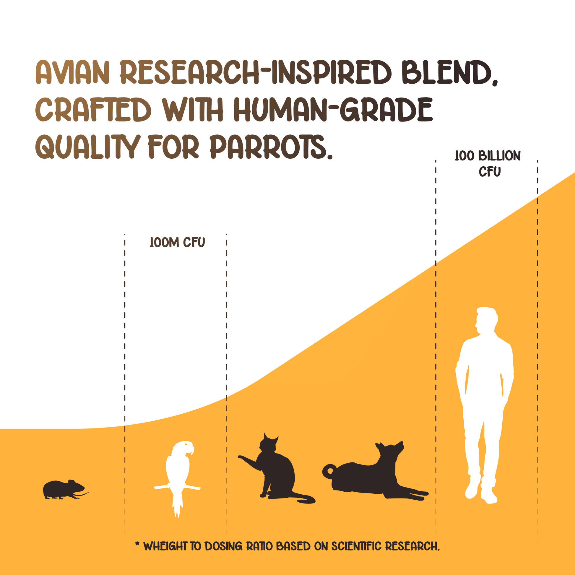 | 100-250 grams | 1/4 scoop | Caiques, Conures, Small Macaws |