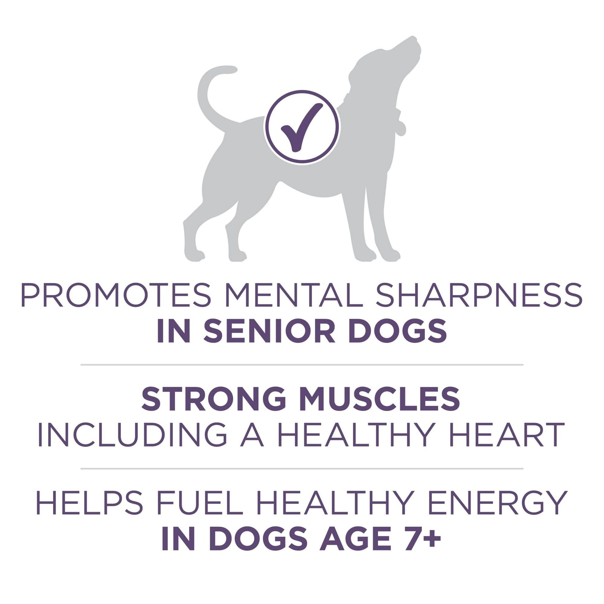 Purina dog food for senior dogs with MCT-rich vegetable oil to nourish and promote mental sharpness and shows an increased average activity level of over 20 percent in dogs seven and older.